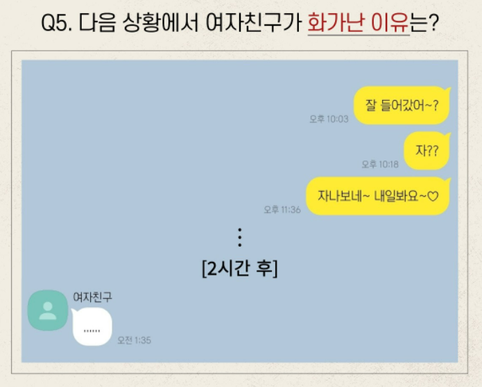 5. 다음 상황에서 여자친구가 화가난 이유는?