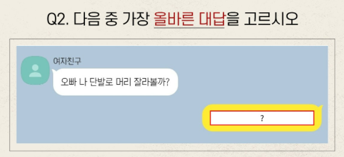 저는 남자라 남자편으로 응시를 했으니 간단히 문제와 정답 해설까지 적어보겠습니다. 정답 스포가 있을 수 있으니 테스트 먼저 해 보고 나서 와서 확인해 보시기를 추천해요.