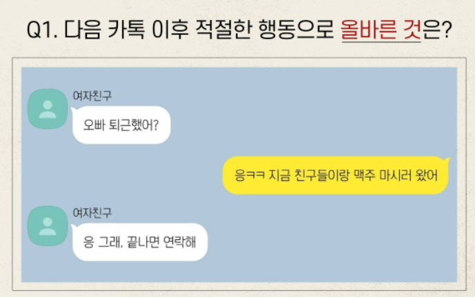 1. 다음 카톡 이후 적절한 행동으로 올바른 것은?