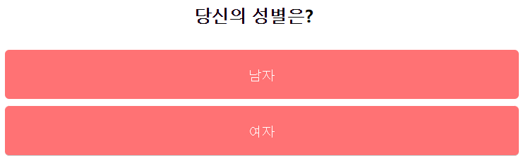 정보 입력을 하면 바로 테스트가 시작됩니다. 남자와 여자 모두 5개 객관식 문항입니다. 접속한 스마트폰이나 PC 해상도에 따라 보기가 다 안보일 수 있기 때문에 잘 확인해서 내리셔야 합니다.
