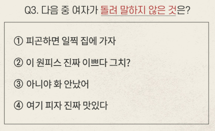 3. 다음 중 여자가 돌려 말하지 않은 것은?