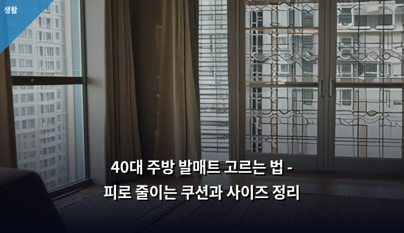 40대가 되면 가사 노동의 강도가 예전과 다르게 느껴지곤 합니다. 설거지 한 번에 무릎이 시큰하고, 주말 김장 한 번에 허리가 끊어질 듯한 분이 많으시죠. 이런 시기에는 도구만 잘 갖춰도 통증이 크게 줄어드는데, 그중에서도 발 밑에 까는 쿠션 매트가 의외로 큰 차이를 만들어요. 40대 주방 발매트는 단순한 인테리어 소품이 아니라 무릎 관절과 허리를 지켜 주는 작은 보조기구라고 보시면 됩니다.